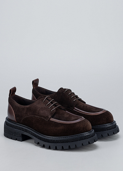 • Мужские демисезонные полуботинки выполнены в современном городском стиле с акцентом на комфорт и выразительную фактуру. Верх из натуральной замши придаёт модели благородный внешний вид, а контрастные кожаные вставки подчёркивают аккуратный силуэт. Утолщённая рельефная подошва обеспечивает устойчивость и удобство при длительной ходьбе, делая модель практичным выбором для активного повседневного использования.