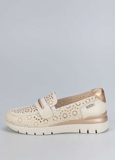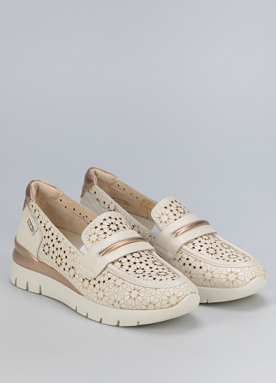 • Женские лоферы золотистого цвета из натуральной кожи от бренда Pikolinos. Эта модель поможет создать запоминающийся образ. Они подойдут для повседневной носки — в них будет комфортно даже во время активного движения.