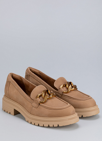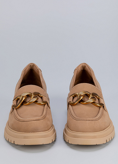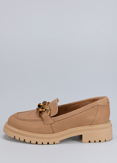 • Женские лоферы бежевого цвета из натуральной кожи от бренда Tamaris. Модель с язычком дополнена декором на подъеме в виде крупной, контрастной цепи. Эта модель поможет создать яркий образ за счет своей фурнитуры. Широкая, рифленая подошва обеспечит уверенный шаг. Они хорошо облегает стопу и подойдут для повседневной носки.