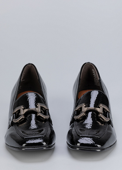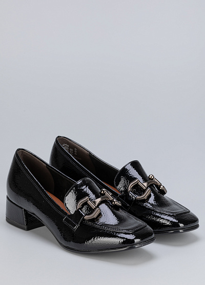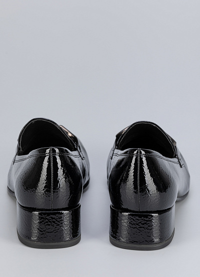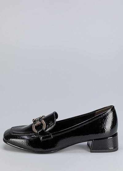 • Женские лоферы черного цвета из экокожи от бренда Tamaris. Эта модель поможет создать яркий образ за счет своей фурнитуры. Они подойдут для повседневной носки — в них будет комфортно даже во время активного движения.