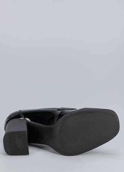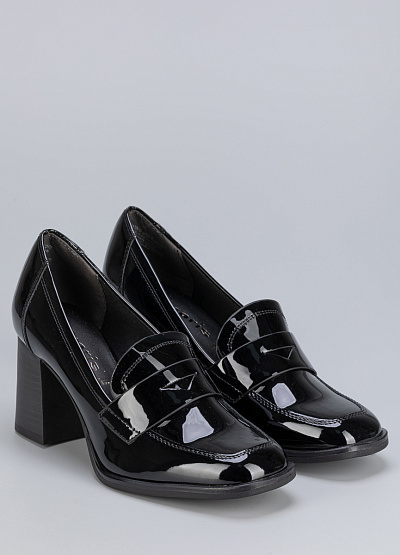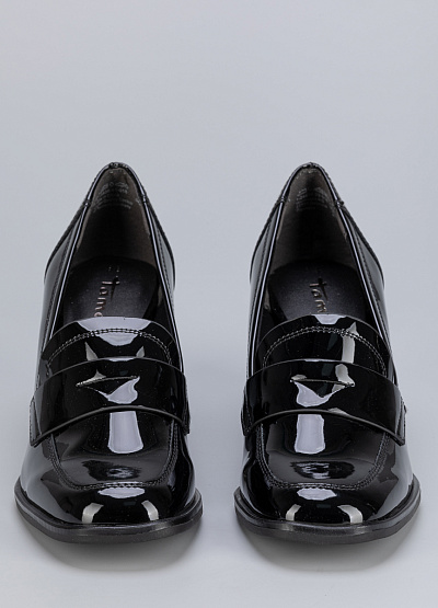• Женские лоферы черного цвета из экокожи от бренда Tamaris. Они подойдут для повседневной носки — в них будет комфортно даже во время активного движения, а каблук сделает шаг уверенным.