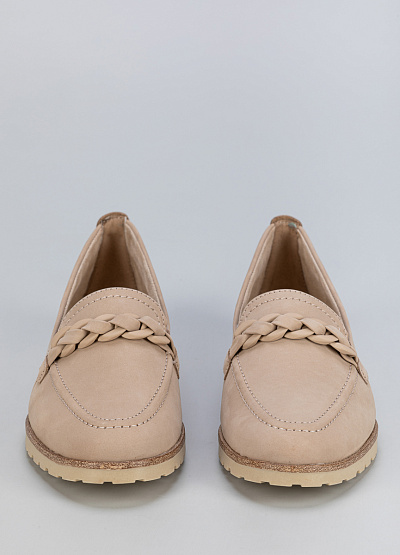 • Эти бежевые замшевые лоферы — стильный и универсальный выбор на каждый день. Лаконичный дизайн с плетеным декором придает элегантность и утонченность.