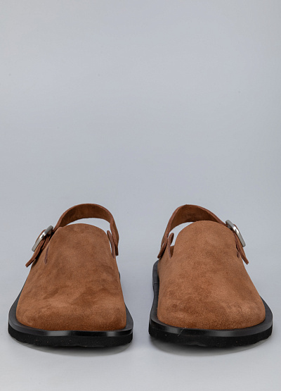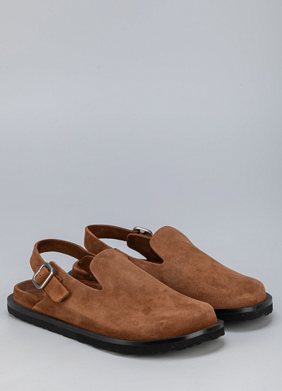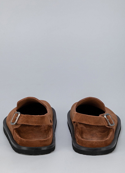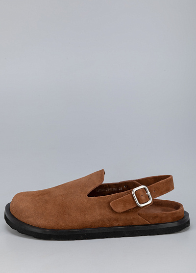• Женские мюли коричневого цвета из натуральной замши от бренда Loretta Very. Ремешок на пятке с пряжкой позволяет регулировать размер, что обеспечивает идеальную посадку на ноге и хорошо держатся за счет закрытого верха.