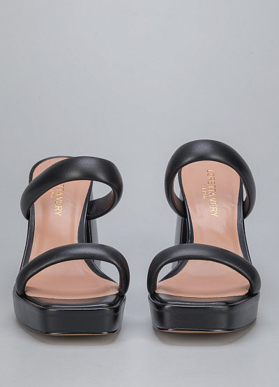 • Женские мюли из натуральной кожи от бренда Loretta Very. Модель с квадратным мысом. Два объемных ремешка на подъеме. Широкая подошва с массивном каблуке.