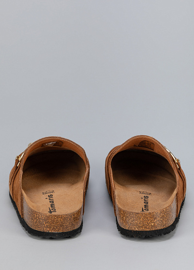 • Женские мюли из натуральной кожи от бренда Tamaris. Комфортная модель с закрытым мысом на широкой подошве сделает шаг мягким, а походку легкой. Ремешок на пряжке создаст эффектный образ, который будет сочетаться не только с джинсами, брюками, шортами, но и с легкими и воздушными платьями миди и макси, создавая стильный контраст.