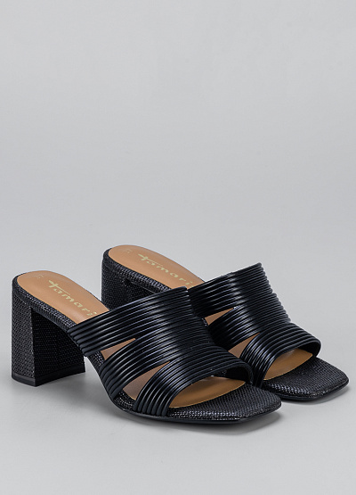 • Женские мюли черного цвета из эко кожи от бренда Tamaris. Модель с широкими ремешками как отдельно играющий элемент вашего образа. Они сочетают в себе стиль и удобство, обеспечивая ногам легкость и комфорт. Открытая пятка и носок придадут уникальности, а плоская подошва на устойчивом каблуке сделает шаг уверенным.