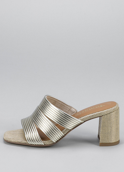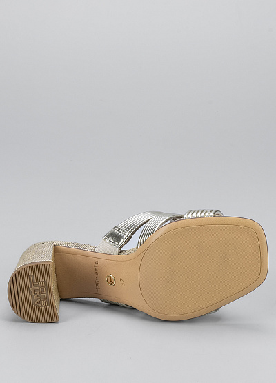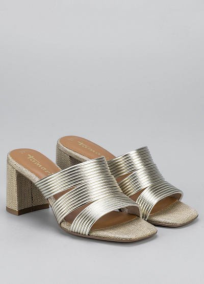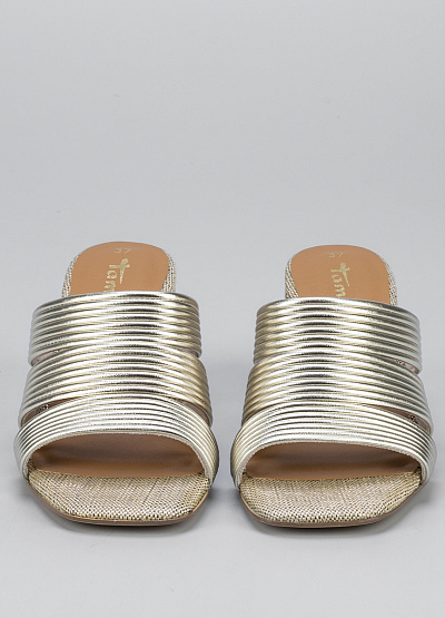 • Женские мюли золотистого цвета из эко кожи от бренда Tamaris. Модель с широкими ремешками как отдельно играющий элемент вашего образа. Они сочетают в себе стиль и удобство, обеспечивая ногам легкость и комфорт. Открытая пятка и носок придадут уникальности, а плоская подошва на устойчивом каблуке сделает шаг уверенным.