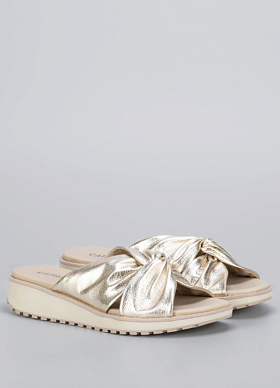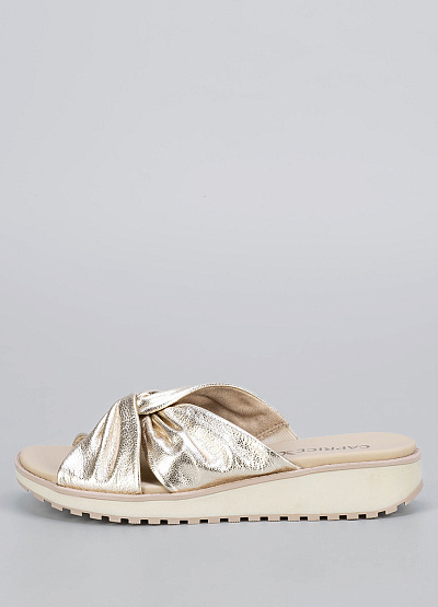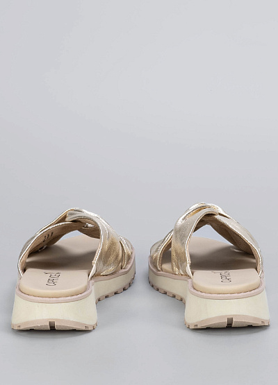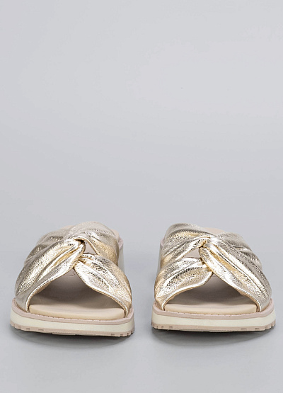 • Элегантные женские мюли в золотистом оттенке — эффектный акцент для летнего гардероба.