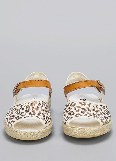 • Яркие и дерзкие сандалии с леопардовым узором — идеальный выбор для жарких дней. Модель дополнена удобным ремешком на пряжке, который фиксирует ногу и добавляет образу изюминку. Лёгкая подошва с джутовой окантовкой делает шаги мягкими и уверенными.