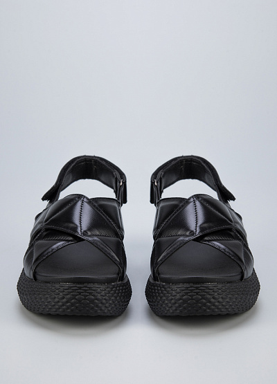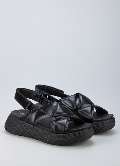 • Стеганые женские сандалии из экокожи от бренда Betsy. Модель с открытым носком. Ромбовидный принт. Застежка-липучка на щиколотке. Плоская подошва с завышенным подъемом.
