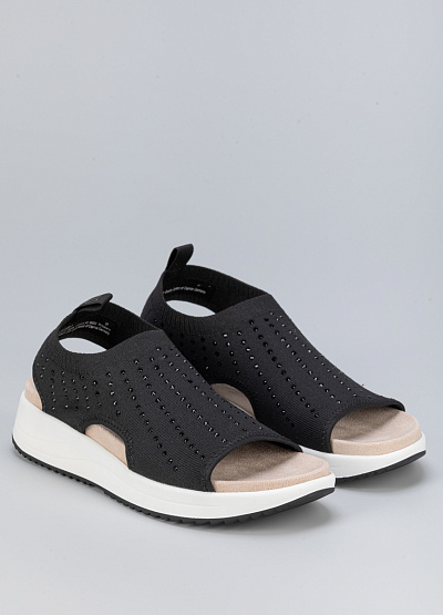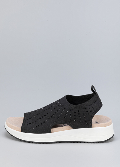 • Женские сандалии черного цвета от бренда Caprice. Их эластичная поверхность делает их устойчивыми и комфортными для ежедневной носки. Надежно облегают стопу, обеспечивая хорошую поддержку. А переливающиеся стразы украсят ваш повседневный образ.