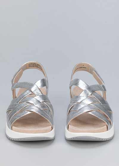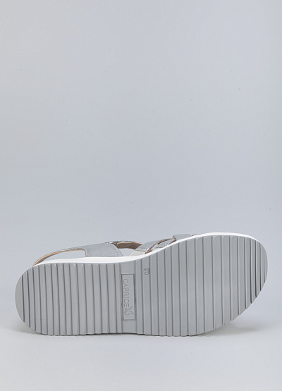 • Женские сандалии серебристого цвета из натуральной кожи от бренда Caprice. Их плетеная отделка делает их устойчивыми и комфортными для ежедневной носки. Надежно застегиваются, обеспечивая хорошую поддержку ноге.