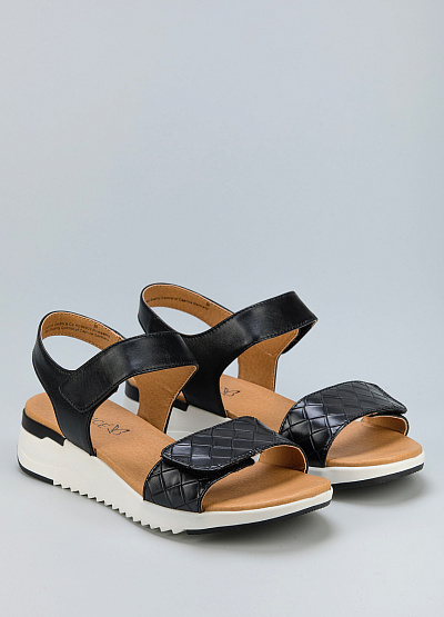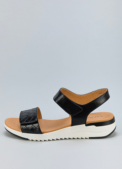 • Женские сандалии от бренда Caprice. Модель с широкими ремешками на липучке. Плоская рифленая подошва с небольшим подъемом.