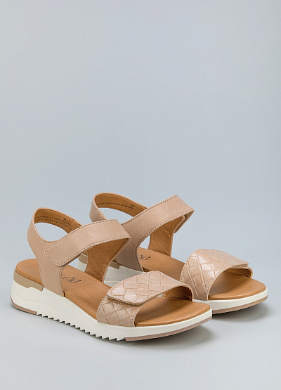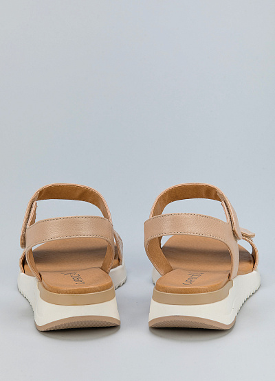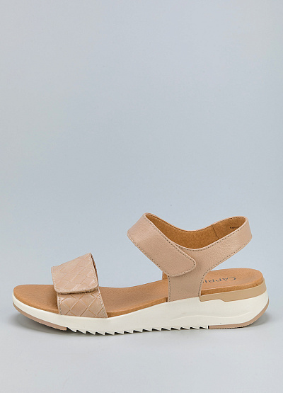 • Женские сандалии от бренда Caprice. Модель с широкими ремешками на липучке. Плоская рифленая подошва с небольшим подъемом.