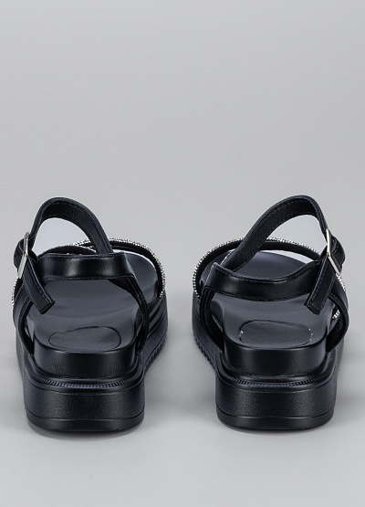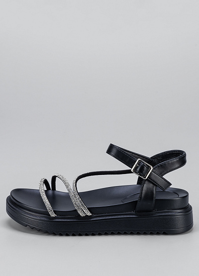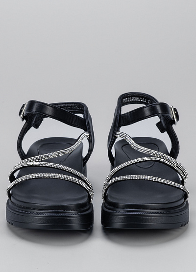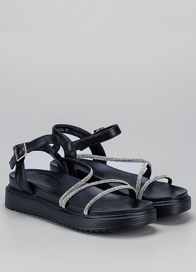 • Женские сандалии черного цвета из экокожи от бренда Franco Manatti. Модель служит не просто стильным дополнением, а отдельно играющим элементом вашего образа. Ремешки украшенные стразами придадут уникальности, а широкая подошва сделает шаг уверенным.