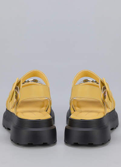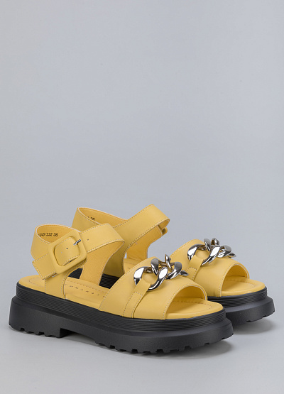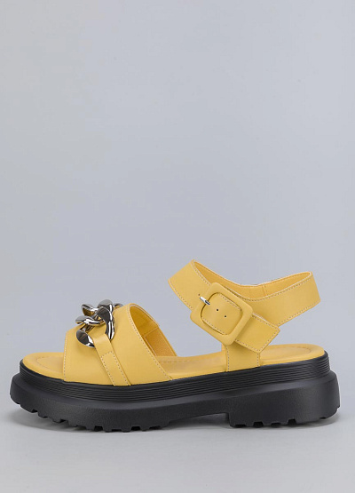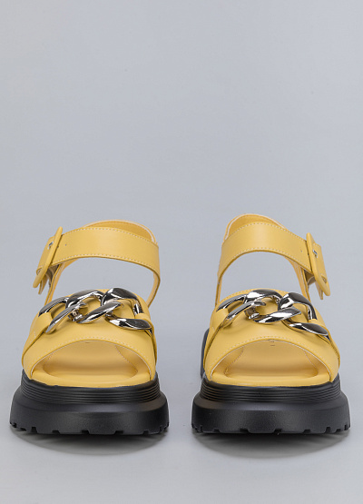 • Женские сандали из натуральной кожи от бренда Franco Manatti. Модель с открытым мысом. Декор в виде серебристой цепи. Застежка-пряжка на щиколотке. Широкая рифленая подошва.