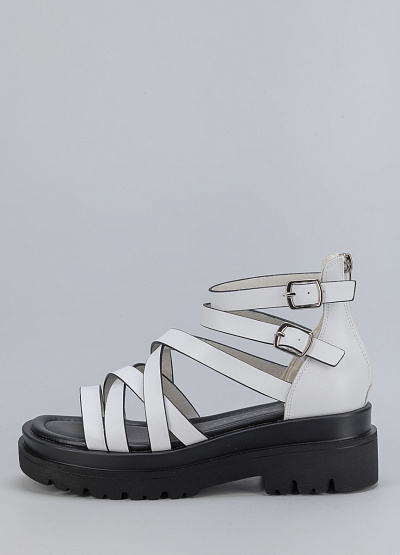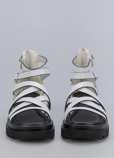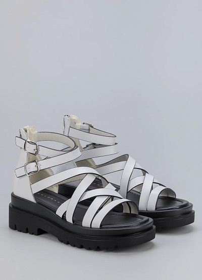 • Женские сандали из натуральной кожи от бренда Franco Manatti. Модель с открытым мысом. Перекрещивающиеся ремешки. Застежка-пряжка на ремешках. Широкая рифленая подошва на низком каблуке.
