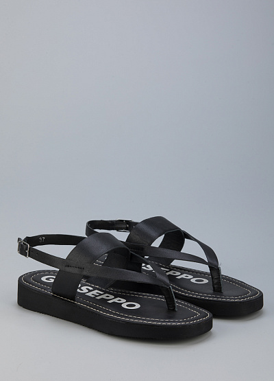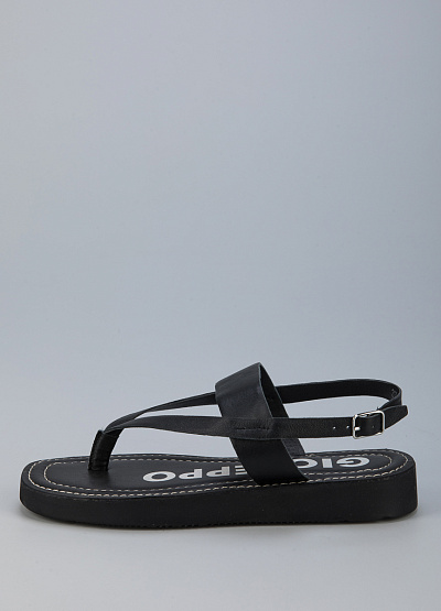 • Женские сандалии из натуральной кожи от бренда Gioseppo. Модель с V-образным креплением между пальцев. Широкий ремешок на подъеме. Застежка-ремешок на щиколотке. Плоская подошва.