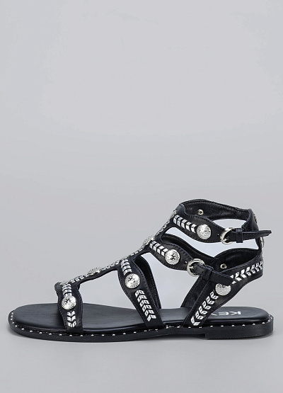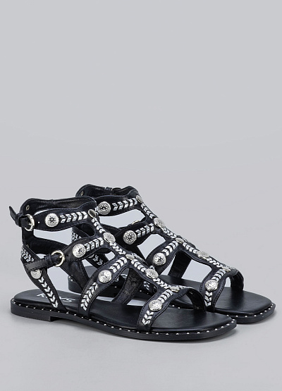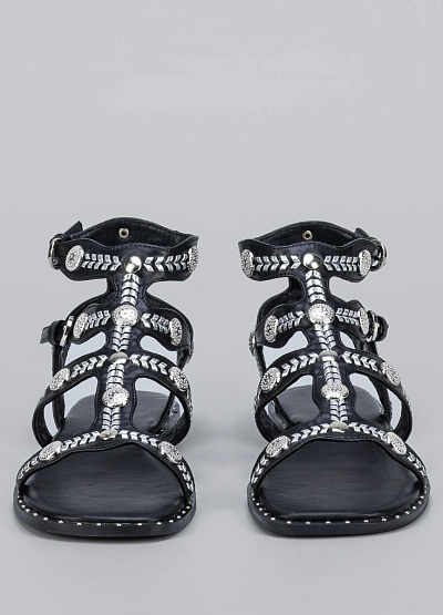 • Гладиаторские сандалии с этническими мотивами — эффектное завершение летнего образа.