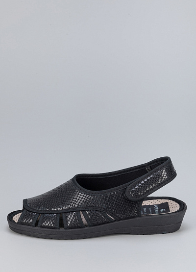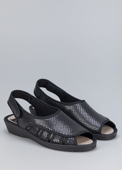 • Женские сандалии черного цвета от бренда Alberola. Модель с застежкой на пятке делает их устойчивыми и комфортными для ежедневной носки, обеспечивая хорошую поддержку.