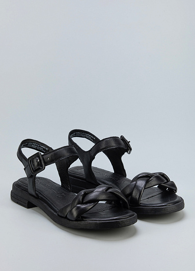 • Женские сандалии из натуральной кожи от бренда Marco Tozzi. Модель с ремешком-косичкой. Застежка-ремешок на щиколотке. Плоская подошва с низким каблуком.