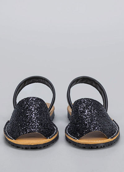 • Женские чёрные сандалии с блестками и задним ремешком. Яркие и стильные сандалии, которые добавят блеска в любой летний образ. Верх модели украшен насыщенными чёрными блёстками, создающими эффект мерцания на свету. Эластичный задний ремешок из гладкой экокожи обеспечивает надёжную фиксацию стопы. Лёгкая подошва с протектором подходит для прогулок как по городу, так и по пляжной набережной. Идеальны для летних вечеринок, отпусков и модных casual-образов.