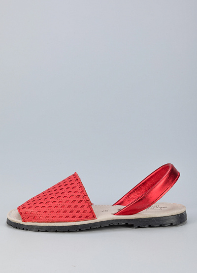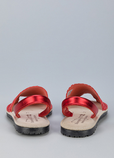 • Женские сандалии из натуральной кожи от бренда Menorquina. Модель с открытым носком. Ремешок на пятке. Плоская рифленая подошва с низким каблуком.