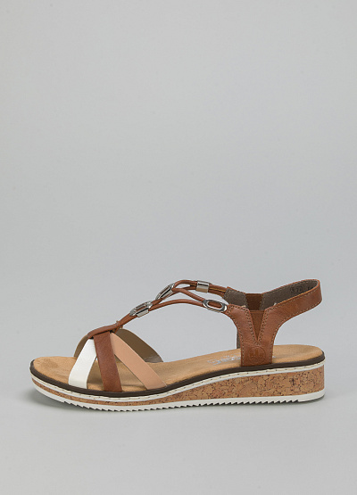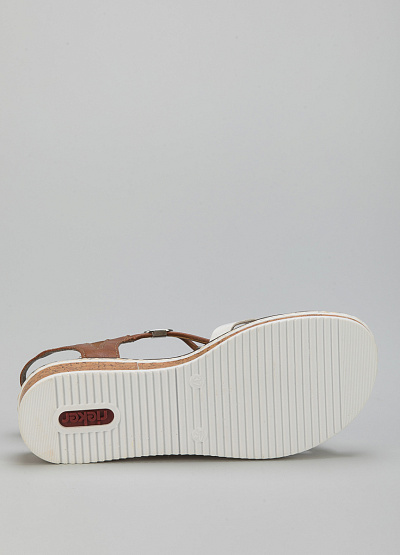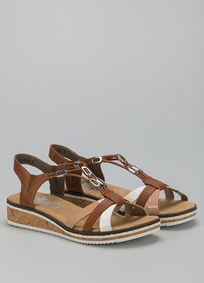 • Женские сандалии от бренда Rieker. Модель с перекрещивающимися перемычками. Эластичные вставки. Танкетка.