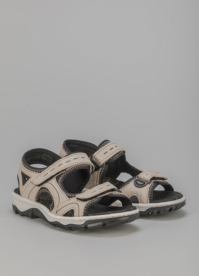 • Женские сандалии от бренда Rieker. Модель с двумя широкими перемычкам. Застежка-липучка. Массивная рифленая подошва.