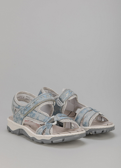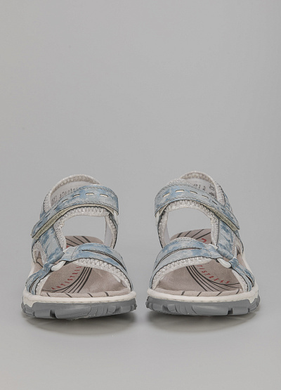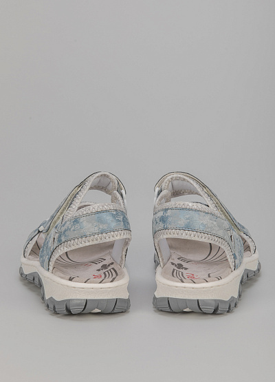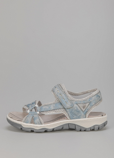 • Женские сандалии от бренда Rieker. Застежка-ремешок на липучке. Плоская рифленая подошва.