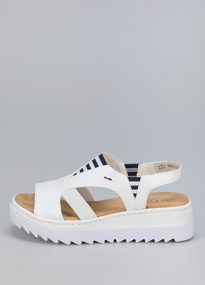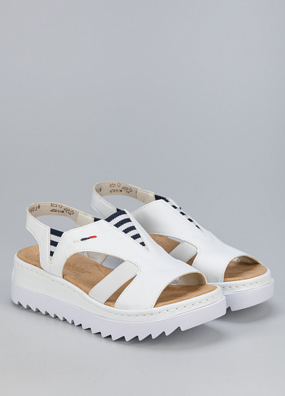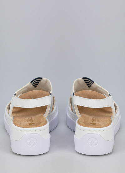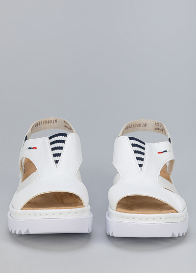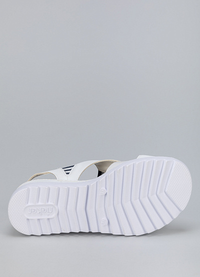 • Женские сандалии белого цвета из экокожи от бренда Rieker. Широкая рифленая подошва делает их устойчивыми и комфортными для ежедневной носки. Они идеально подойдут для выхода по делам, что позволит вам почувствовать настоящий комфорт.