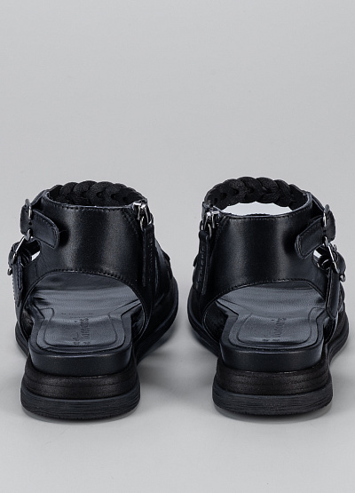 • Женские сандалии черного цвета из натуральной кожи и экокожи от бренда Tamaris. Плоская подошва и множетво ремешков делает их устойчивыми и комфортными для ежедневной носки. Дополнительная молния сбоку обеспечивает хорошую поддержку ноге.