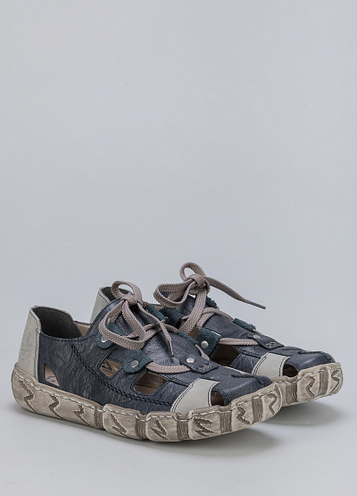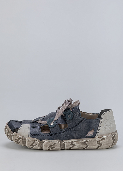 • Женские закрытые сандалии из натуральной кожи и экокожи от бренда Rieker. Открытая шнуровка. Плоская рифленая подошва.
