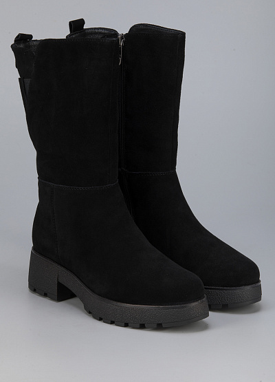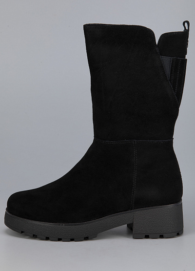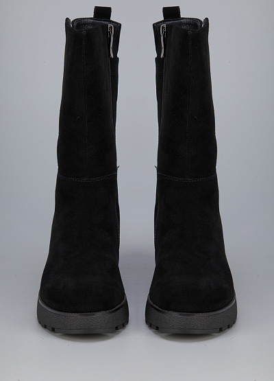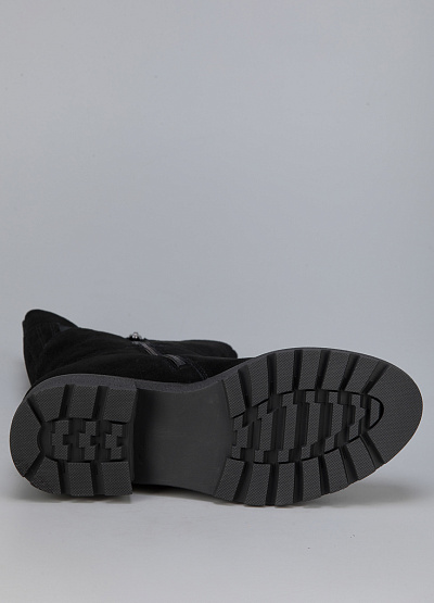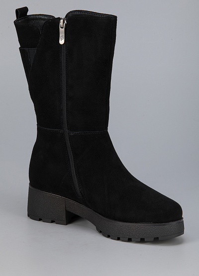 • Женские сапоги из замши от бренда Franco Manatti. Закругленный носок. Эластичные вставки по бокам. Боковая молния. Петли для подтягивания сзади. Плоская подошва на низком каблуке.