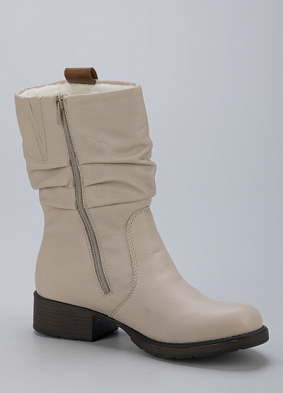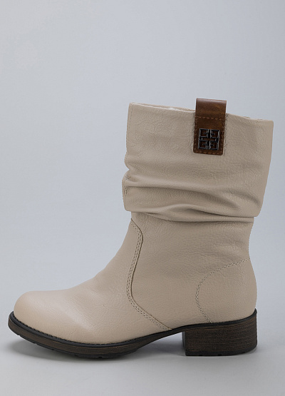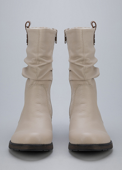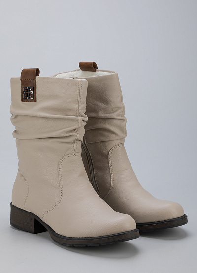 • Женские полусапоги из экокожи от бренда Rieker. Закругленный носок. Боковая молния. Контрастные петли для подтягивания сбоку. Плоская подошва на низком каблуке.