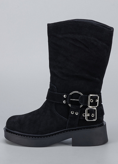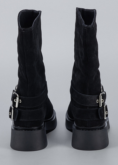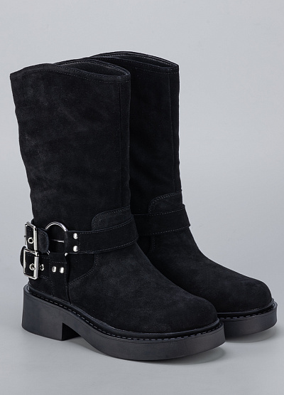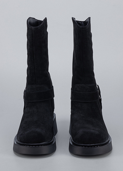 • Женские сапоги черного цвета из замши от бренда Franco Manatti. Ваш образ станет с ними более стильным и женственным. Модель с высокой голенью. Закругленный носок. Удобный, устойчивый каблук. Уникальный дизайн в виде фурнитуры сделает ваш образ более стильным и интересным.