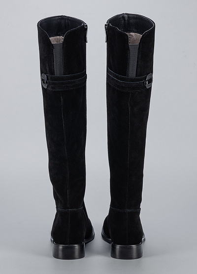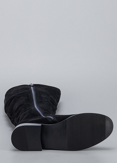 • Женские сапоги черного цвета из замши от бренда Franco Manatti. Ваш образ станет с ними более стильным и женственным. Модель с высокой голенью. Заостренный носок. Изящный каблук.