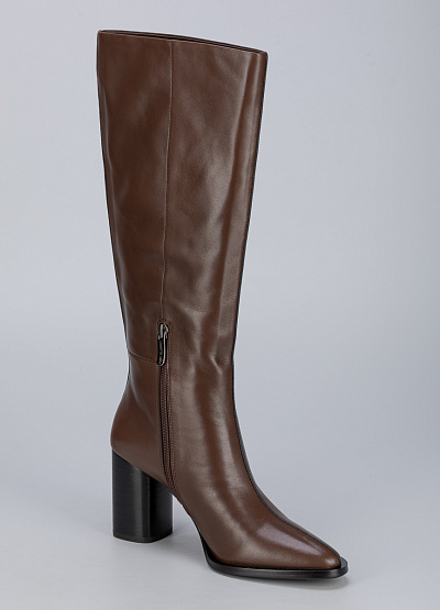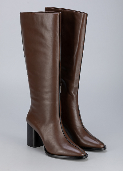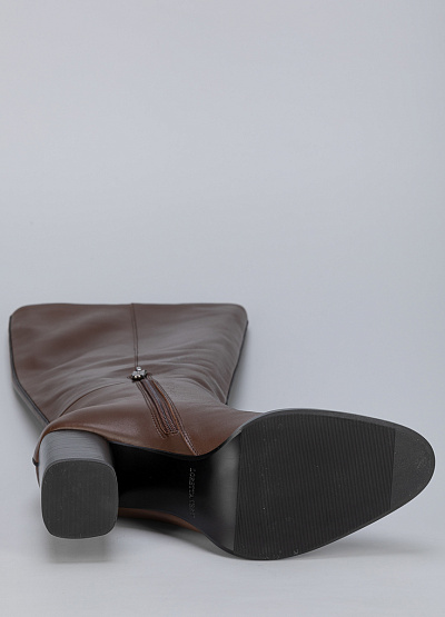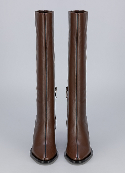 • Женские сапоги коричневого цвета из натуральной кожи от бренда Loretta Very. Ваш образ станет с ними более стильным и женственным. Модель с высокой голенью. Заостренный носок. Изящный каблук.