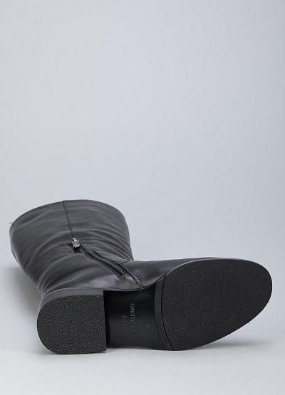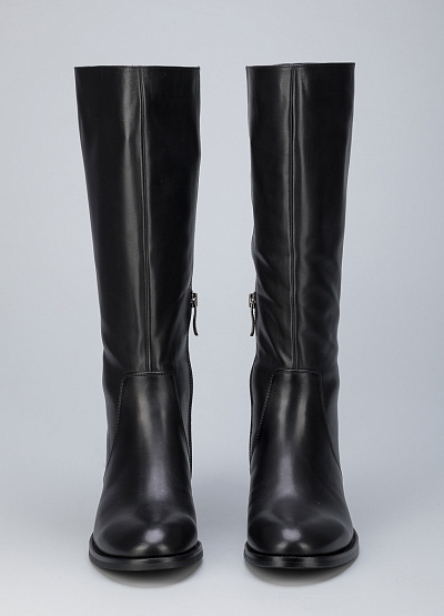 • Женские сапоги из натуральной кожи и от бренда Loretta Very. Лаконичная модель с высокой голенью. Закругленный носок. Замок на молнии сбоку. Плоская подошва на низком каблуке.