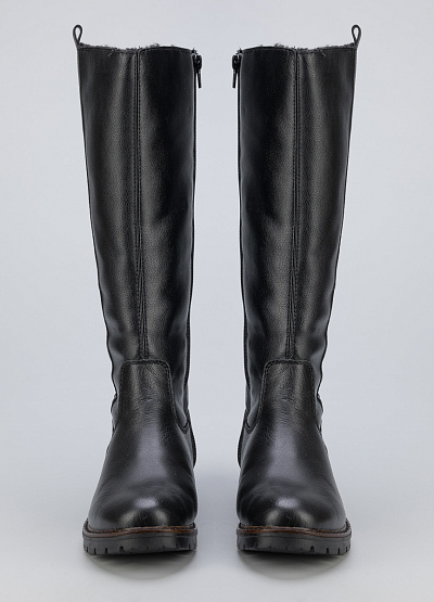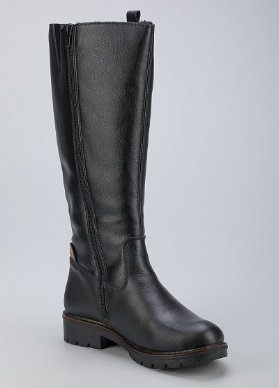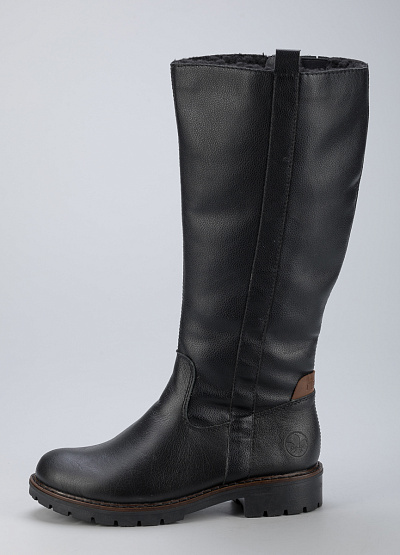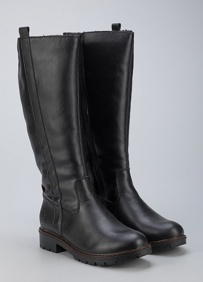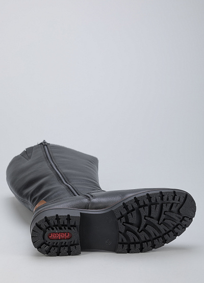 • Женские сапоги из натуральной кожи от бренда Rieker. Модель с высокой голенью. Закругленный носок. Замок на молнии сбоку. Петли для подтягивания сбоку. Тисненый логотип сбоку. Плоская рифленая подошва на низком каблуке.