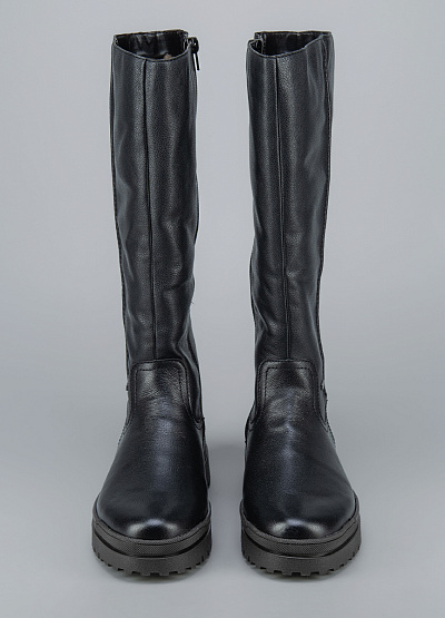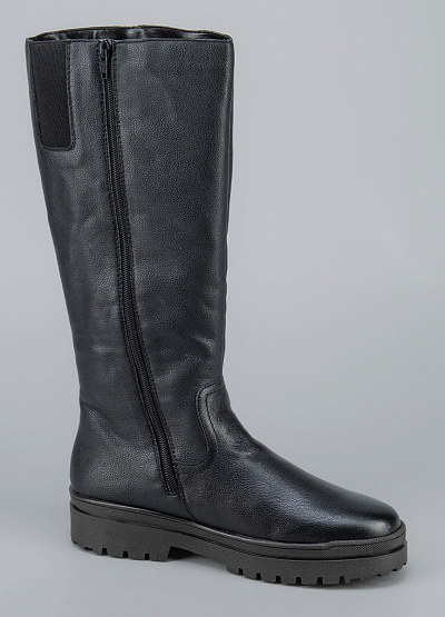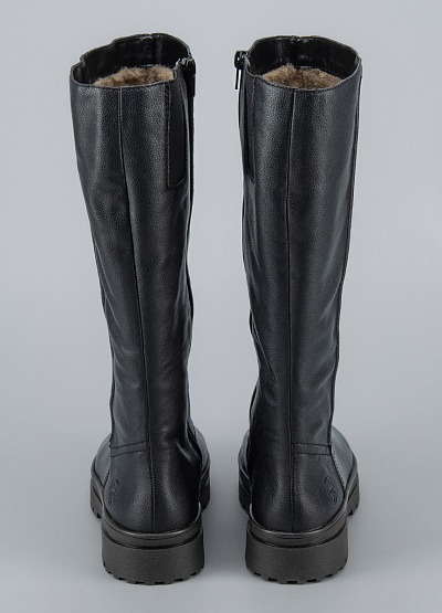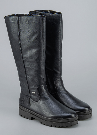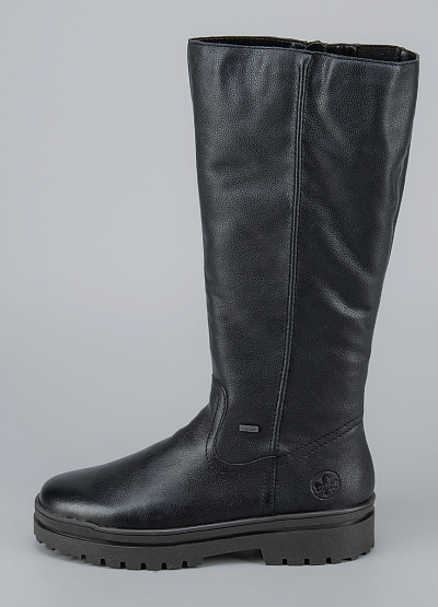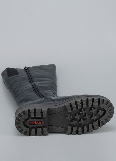 • Женские сапоги из эко кожи от бренда  Rieker. Закругленный носок. Молния сбоку. Логотип сбоку. Плоская рифленая подошва.
