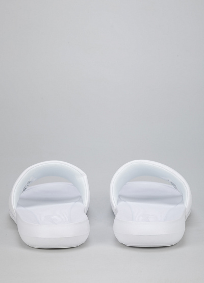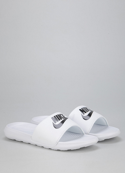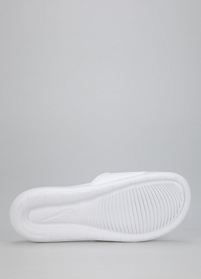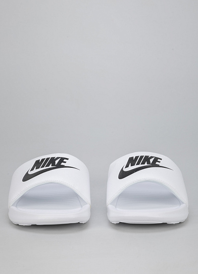 • Женские сланцы из экокожи от бренда Nike. Модель с широкой перемычкой. Принт по центру. Плоская рифленая подошва.