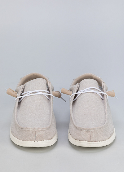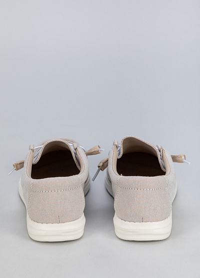 • Эти стильные и комфортные женские слипоны бежевого цвета – идеальный выбор для теплого времени года. Легкий и дышащий текстильный верх обеспечивает вентиляцию, а мягкая подошва дарит комфорт при ходьбе. Практичная шнуровка с фиксатором позволяет быстро и удобно надевать обувь.