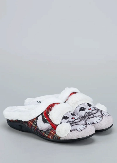 • Женские тапочки Alberola — уютная зимняя модель с очаровательным дизайном и мягкой отделкой из искусственного меха. Клетчатый узор в сочетании с забавным принтом и декоративными помпонами придаёт паре праздничное и домашнее настроение.