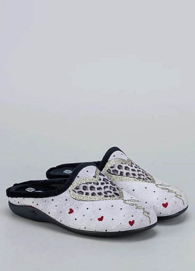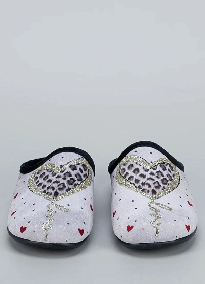 • Женские тапочки Alberola — стильная и уютная модель с выразительным дизайном в романтическом стиле. Украшены золотистым сердцем с леопардовым принтом и мелкими красными сердечками по всему периметру, создавая игривое и тёплое настроение.
