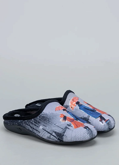 • Женские тапочки Alberola — комфорт и оригинальный стиль для домашнего уюта. Модель украшена принтом с городской сценой — силуэтом девушки под зонтом на фоне зимнего города, что придаёт изделию особую атмосферу тепла и спокойствия. Внутренняя отделка выполнена из мягкого ворса, обеспечивая приятные ощущения при каждом шаге.