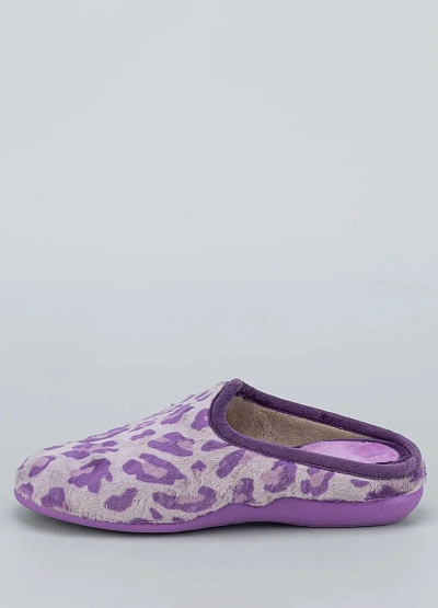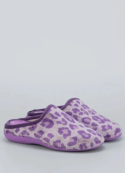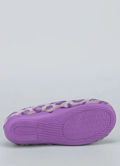 • Женские тапочки в лавандовом леопардовом исполнении — уютный акцент для домашнего гардероба. Модель сочетает оригинальный дизайн с комфортной посадкой и мягкими материалами.