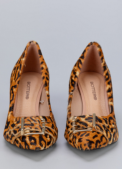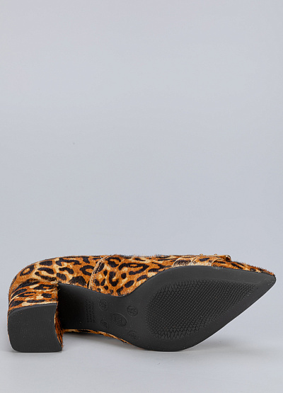 • Женские туфли с леопардовым принтом от бренда Bottero. Модель выполнена в классическом стиле лодочек с острым носом и низким каблуком, который придает им изящный вид. Акцентная деталь - пряжка на носке и поверхность из ворса. Туфли будут красивым завершением любого образа.