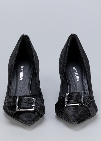• Женские туфли черного цвета из натуральной кожи от бренда Bottero. Модель выполнена в классическом стиле лодочек с острым носом и низким каблуком, который придает им изящный вид. Акцентная деталь - пряжка на носке и поверхность из ворса. Туфли будут красивым завершением любого образа.