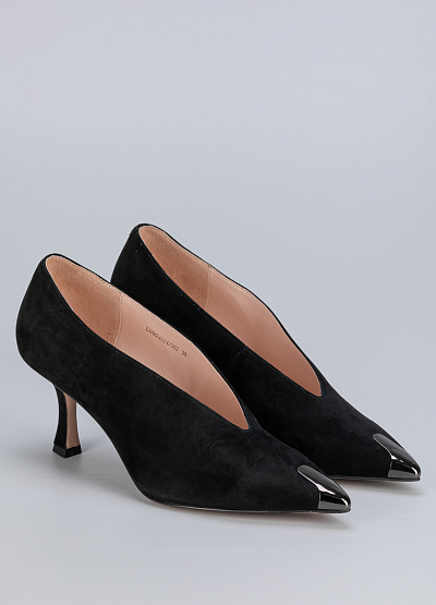 • Женские туфли черного цвета из натуральной замши от бренда Loretta Very. Модель с интересным дизайном и маленьким каблуком придают им комфорт в носке. Элегантный стиль подчекнет любой образ и придаст уверенности.